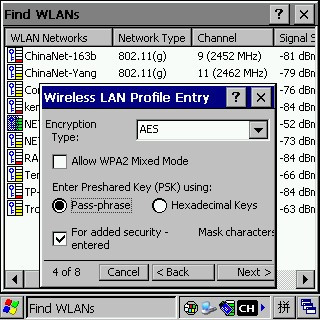 7接下來的設置在選擇不同的Security ModeAuthentication Type會有不同,下面還是WPA2 - Personal為例,如下圖所示,“Encryption Type”需要根據無線路由器的設置來選擇,我用的是AES;為了方便密碼輸入,所以選擇“Pass-phrase”,這樣可以直接輸入字母或數字,否則還要先轉成十六進制串輸入,那樣太麻煩。設好了,繼續點“Next”